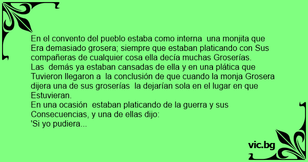En el convento del pueblo estaba como interna una monjita que Era demasiado grosera; siempre que estaban platicando соn Sus compañeras de cualquier cosa ella decía muchas Groserías.