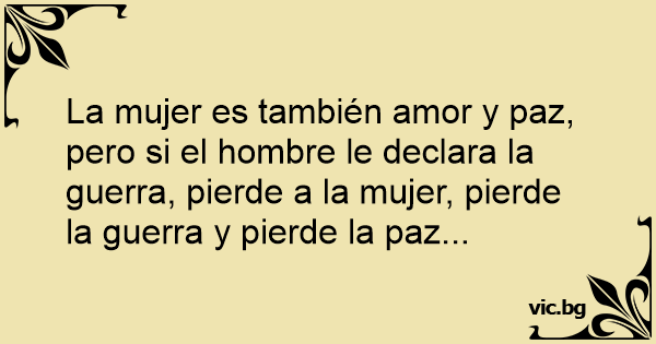 La mujer es también amor y paz, pero si el hombre le declara la guerra, pierde a la mujer, pierde la guerra y pierde la paz...