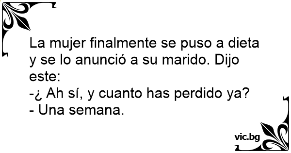 La mujer finalmente se puso a dieta y se lo anunció a su marido. Dijo este: