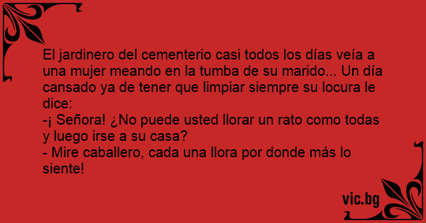 El jardinero del cementerio casi todos los días veía a una mujer meando en la tumba de su marido... Un día cansado ya de tener que limpiar siempre su locura le dice: