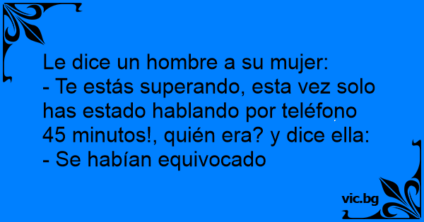 - Te estás superando, esta vez solo has estado hablando por teléfono 45 minutos!, quién era? y dice ella:
