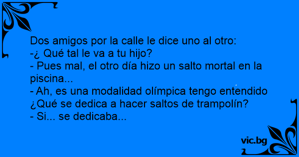 - Pues mal, el otro día hizo un salto mortal en la piscina...
