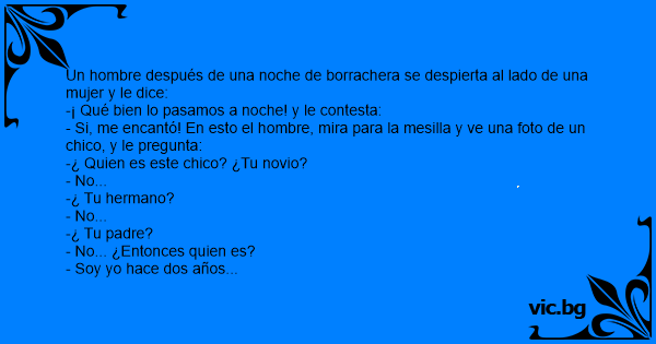Un hombre después de una noche de borrachera se despierta al lado de una mujer y le dice:
