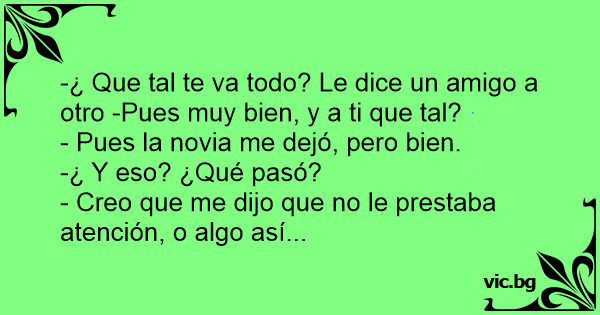 - Pues la novia me dejó, pero bien.