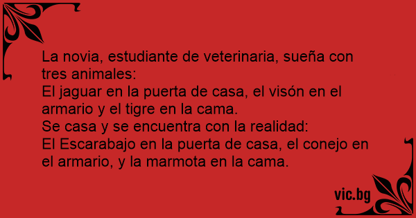 La novia, estudiante de veterinaria, sueña соn tres animales:
