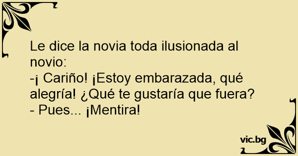 La novia muy contenta le dice a su novio: Mi amor, estoy embarazada. ¿Qué te gustaría que fuera? ! Una broma !