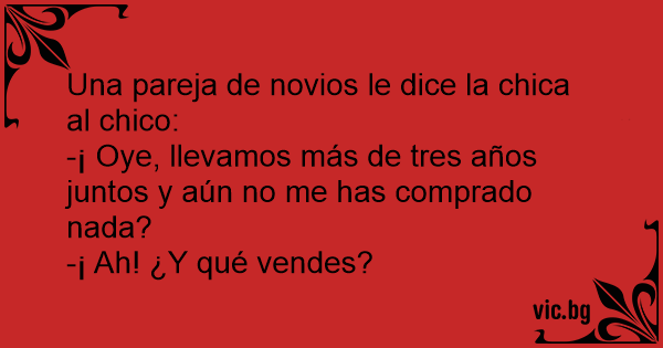 -¡ Oye, llevamos más de tres años juntos y aún no me has comprado nada?