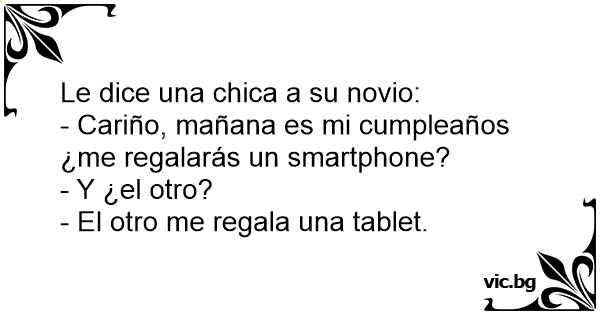 - Amor, me compras un celular? - Y el otro? - El me va a comprar una tablet