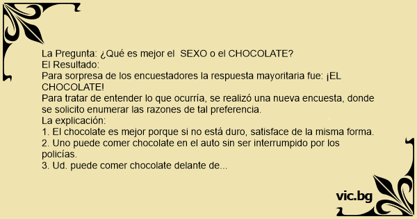 La Pregunta: ¿Qué es mejor el SЕXО o el CHOCOLATE?