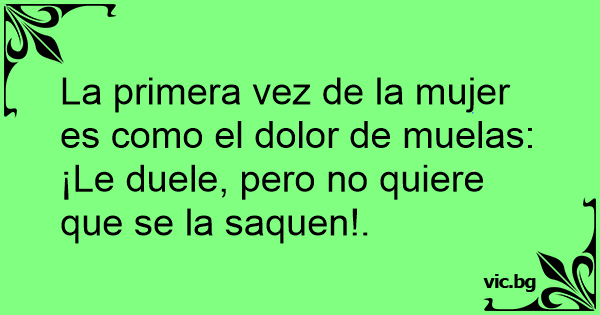 La primera vez de la mujer es como el dolor de muelas: ¡Le duele, pero no quiere que se la saquen!.