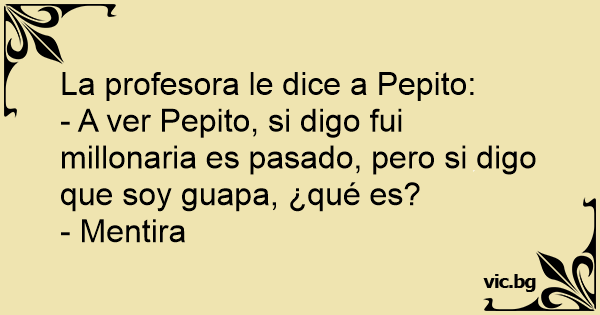 - A ver Pepito, si digo fui millonaria es pasado, pero si digo que soy guapa, ¿qué es?