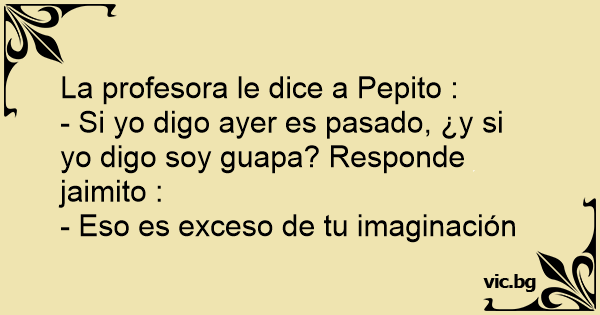 - Si yo digo ayer es pasado, ¿y si yo digo soy guapa? Responde jaimito :