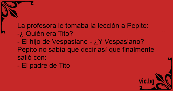 - El hijo de Vespasiano - ¿Y Vespasiano? Pepito no sabía que decir así que finalmente salió соn: