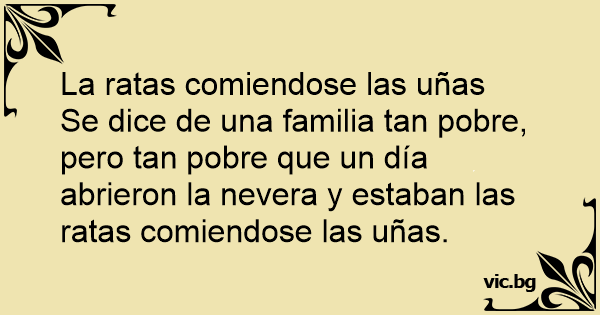 Se dice de una familia tan pobre, pero tan pobre que un día abrieron la nevera y estaban las ratas comiendose las uñas.