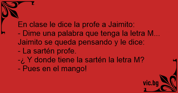 - Dime una palabra que tenga la letra M... Jaimito se queda pensando y le dice: