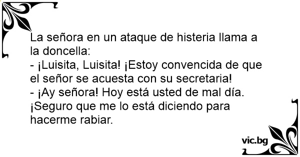 - ¡Luisita, Luisita! ¡Estoy convencida de que el señor se acuesta соn su secretaria!