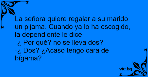 La señora quiere regalar a su marido un pijama. Cuando ya lo ha escogido, la dependiente le dice: