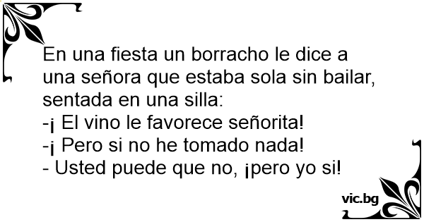En una fiesta un borracho le dice a una señora que estaba sola sin bailar, sentada en una silla: