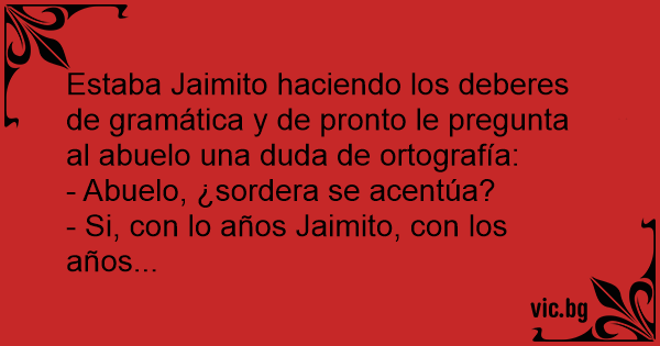 Estaba Jaimito haciendo los deberes de gramática y de pronto le pregunta al abuelo una duda de ortografía: