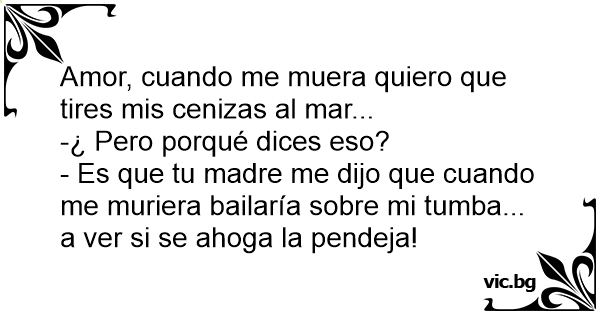 - Es que tu madre me dijo que cuando me muriera bailaría sobre mi tumba... a ver si se ahoga la pendeja!
