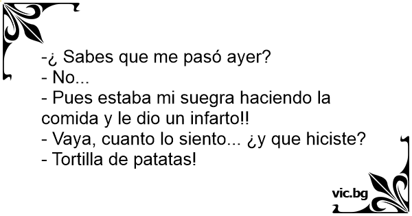 - Pues estaba mi suegra haciendo la comida y le dio un infarto!!