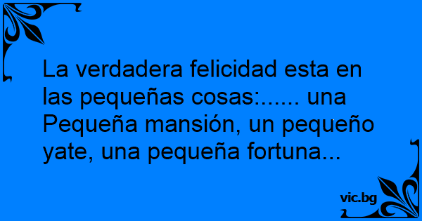 La verdadera felicidad esta en las pequeñas cosas:...... una Pequeña mansión, un pequeño yate, una pequeña fortuna...