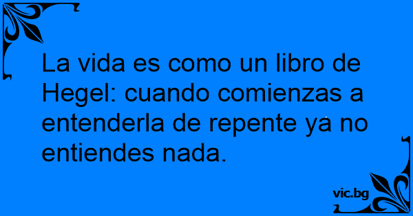 La vida es como un libro de Hegel: cuando comienzas a entenderla de repente ya no entiendes nada.