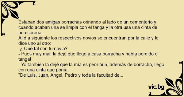 Estaban dos amigas borrachas orinando al lado de un cementerio y cuando acaban una se limpia соn el tanga y la otra usa una cinta de una corona...