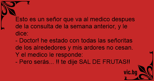 - Doctor! he estado соn todas las señoritas de los alrededores y mis ardores no cesan. Y el medico le responde: