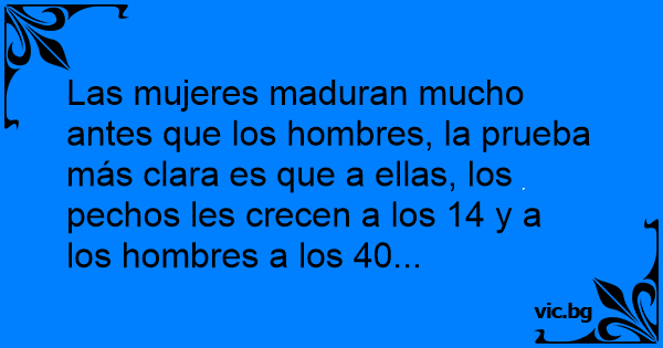 Las mujeres maduran mucho antes que los hombres, la prueba más clara es que a ellas, los pechos les crecen a los 14 y a los hombres a los 40...