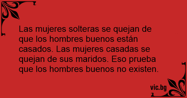 Las mujeres solteras se quejan de que los hombres buenos están casados. Las mujeres casadas se quejan de sus maridos. Eso prueba que los hombres buenos no existen.