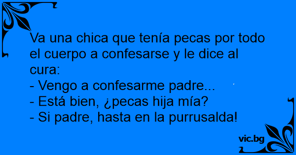 Va una chica que tenía pecas por todo el cuerpo a confesarse y le dice al cura: