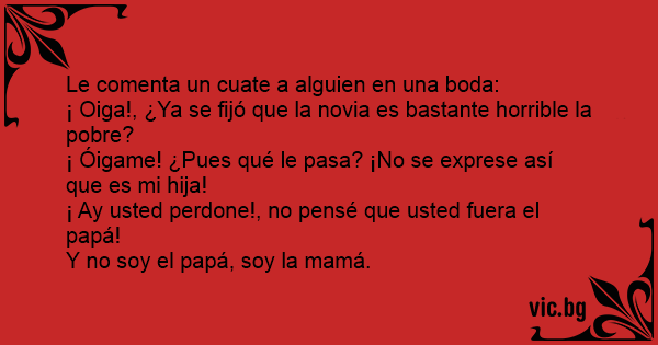 ¡ Oiga!, ¿Ya se fijó que la novia es bastante horrible la pobre?