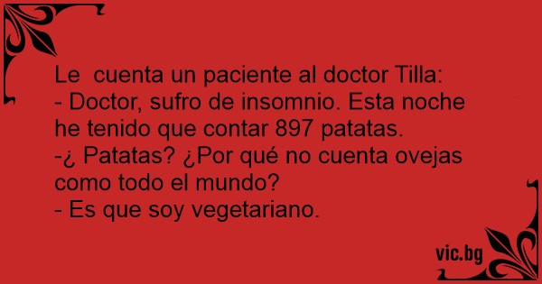 - Doctor, sufro de insomnio. Esta noche he tenido que contar 897 patatas.