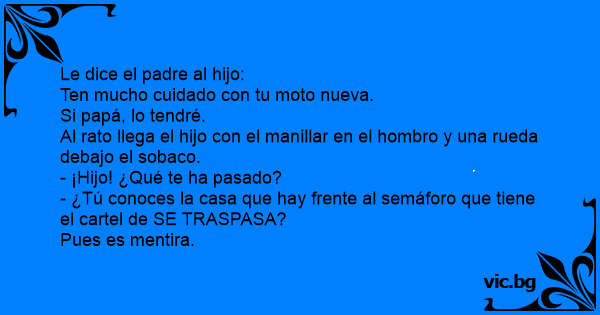 - ¿Tú conoces la casa que hay frente al semáforo que tiene el cartel de SE TRASPASA?