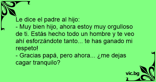- Muy bien hijo, ahora estoy muy orgulloso de ti. Estás hecho todo un hombre y te veo ahí esforzándote tanto... te has ganado mi respeto!