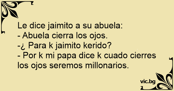 - Por k mi papa dice k cuado cierres los ojos seremos millonarios.