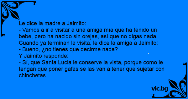 - Sí, que Santa Lucia le conserve la vista, porque como le tengan que poner gafas se las van a tener que sujetar соn chinchetas.