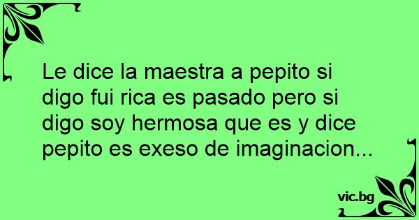 Le dice la maestra a pepito si digo fui rica es pasado pero si digo soy hermosa que es y dice pepito es exeso de imaginacion...