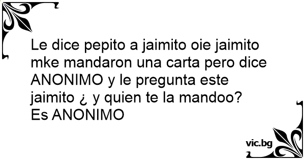 Le dice pepito a jaimito oie jaimito mke mandaron una carta pero dice ANONIMO y le pregunta este jaimito ¿ y quien te la mandoo?