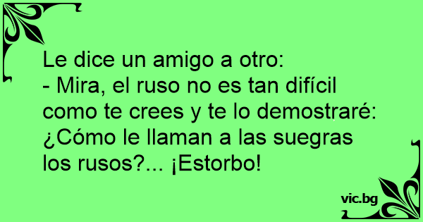 - Mira, el ruso no es tan difícil como te crees y te lo demostraré: ¿Cómo le llaman a las suegras los rusos?... ¡Estorbo!