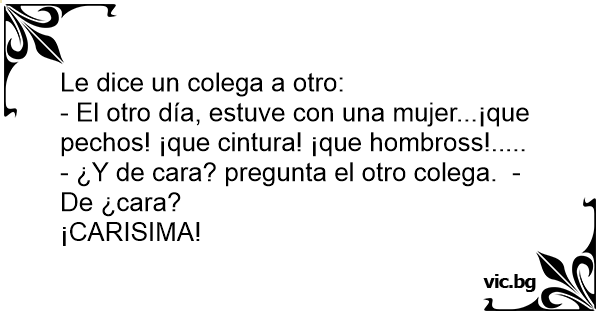 - ¿Y de cara? pregunta el otro colega. - De ¿cara?