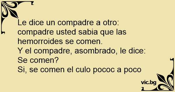 Le dice un compadre a otro: compadre usted sabia que las hemorroides se comen.
