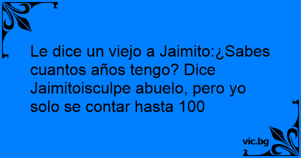 Le dice un viejo a Jaimito:¿Sabes cuantos años tengo? Dice Jaimitoisculpe abuelo, pero yo solo se contar hasta 100