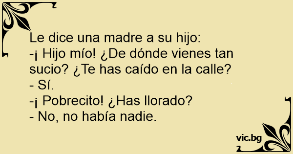 -¡ Hijo mío! ¿De dónde vienes tan sucio? ¿Te has caído en la calle?