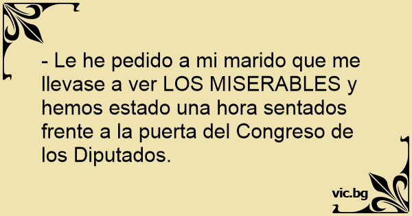 - Le he pedido a mi marido que me llevase a ver LOS MISERABLES y hemos estado una hоrа sentados frente a la puerta del Congreso de los Diputados.