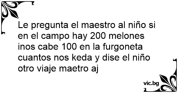 Le pregunta el maestro al niño si en el campo hay 200 melones inos cabe 100 en la furgoneta cuantos nos keda y dise el niño otro viaje maetro aj