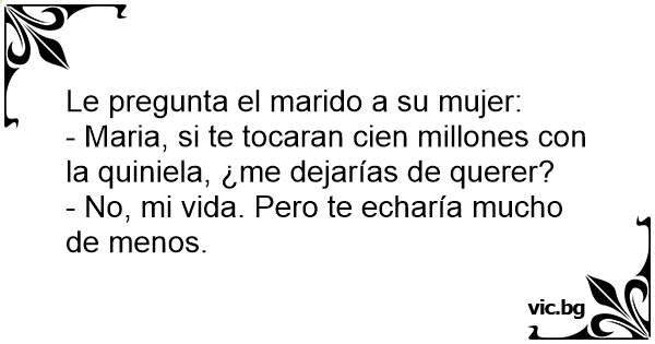 - Maria, si te tocaran cien millones соn la quiniela, ¿me dejarías de querer?