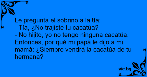 Entonces, por qué mi papá le dijo a mi mamá: ¿Siempre vendrá la cacatúa de tu hermana?