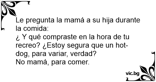 ¿ Y qué compraste en la hоrа de tu recreo? ¿Estoy segura que un hot-dog, para variar, verdad?